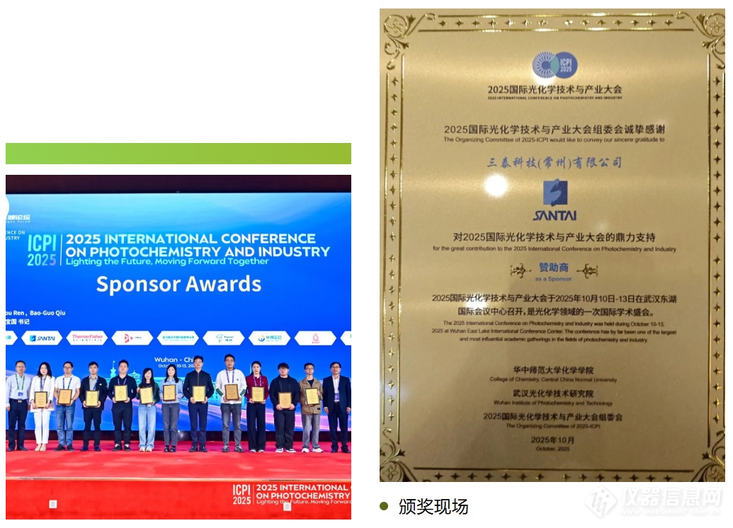 2025国际光化学技术与产业大会在武汉东湖国际会议中心圆满落幕,三泰科技受邀参与闭幕式颁奖典礼,因可靠稳定的产品和为客户提供可持续的增值服务的先进理念,三泰科技代表上台领奖,现场众多高校科研机构与企业共同见证。